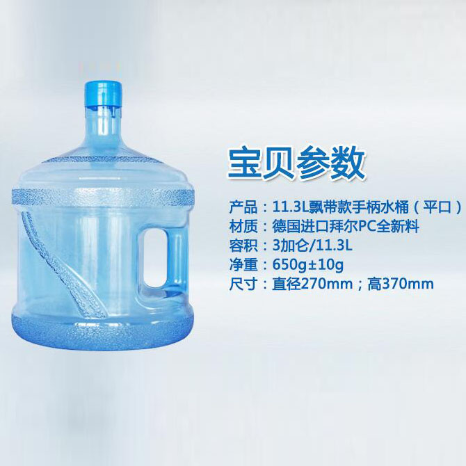 食品級手提3加侖平口PC純凈水桶飲水機桶11.3升帶蓋